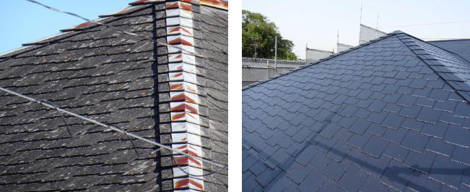 屋根の再塗装は約10年が目安です。見えない所も点検し、定期的に塗装することで大切なお住まいを守ります。